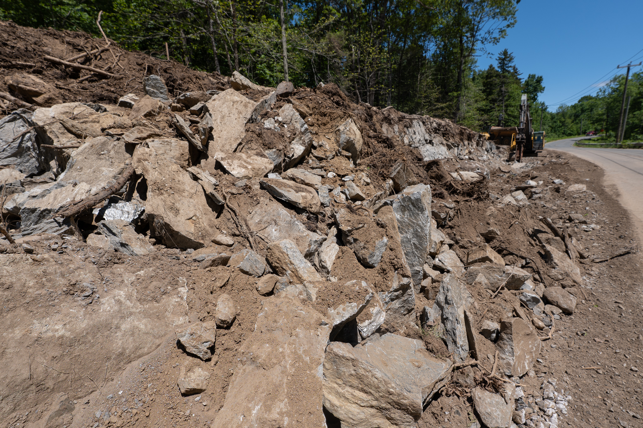 Morais, the construction company, is taking this week off, as is the Blasting Subcontractor. The first section of blasting and stone removal is progressing slowly and they will resume drilling, blasting and clearing next week. So please expect similar delays of up to a couple hours if they’re blasting. The detour signs will be directing traffic down East Windsor Road to the middle of Peru.