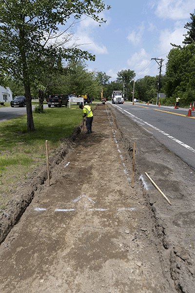 The crews are working this week and are concentrating on replacement of Guard Rails and finishing up the sidewalks in the center of town.