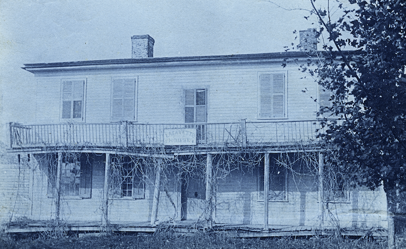 Pearce Tavern, where Lafayette spent the night in 1825, later changed its name to Lafayette House, pictured here in a state of disrepair. The Worthington Library, completed in 1915, stands on the same spot.