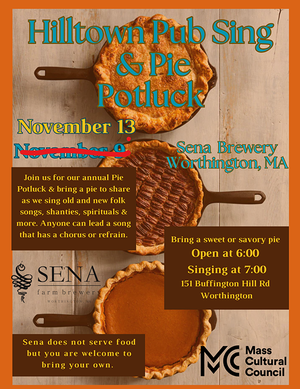 Sweater weather has officially arrived and It’s time to get out your favorite pie recipes in preparation for the annual Pie Potluck Pub Sing! We’ll share sweet and savory pies while singing sweet and savory songs on Thursday, November 13th. Bring your pies to Sena Brewery starting at 6:00. Singing begins at 7:00. The Pie Potluck Pub Sing is the perfect occasion to bring a friend or family member!