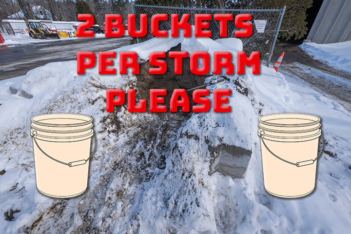 Outside the Highway Department, in front of the Salt Barn, is a sand pile for residential use. We need to ask you to please limit yourself to 2 buckets of sand per storm. We’re seeing instances of folks filling up their pickup bed with sand and unfortunately that really isn’t sustainable for the town. Also, the Highway Department is typically not working over the weekend, and is unable to replenish the sand pile, so we are sometimes running out on the weekends.