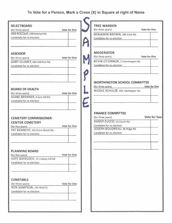 BALLOTS MUST BE RECEIVED AT TOWN HALL BY 12:30PM ON MAY 2